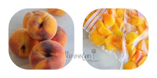 El melocotón es un poderoso reconstituyente del sistema inmunológico. Su consumo consigue reducir el estrés, la anemia y mejorar el funcionamiento de huesos y dientes. Los melocotones frescos son bajos en calorías, y se componen principalmente por agua (86%). Después del agua, los hidratos de carbono forman el componente mayoritario de esta fruta, que también es rica en fibra. Al estar congelados correctamente, pasado mes y medio, no habían perdido ni su color, ni su sabor.